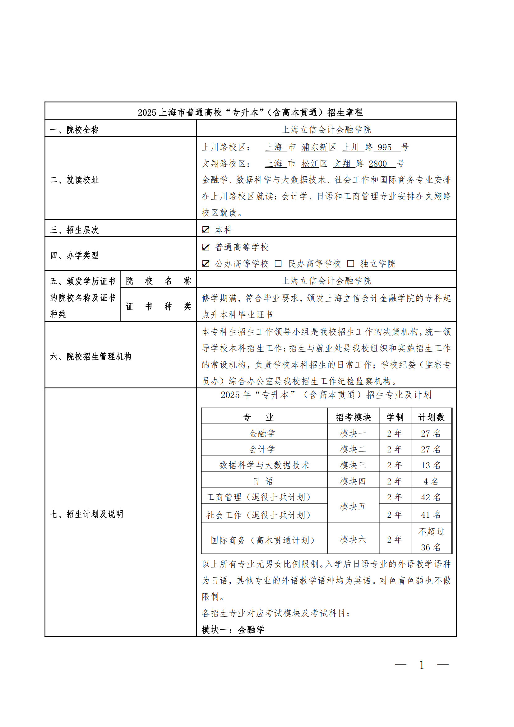 【招生简章】2025年上海立信会计金融学院专升本