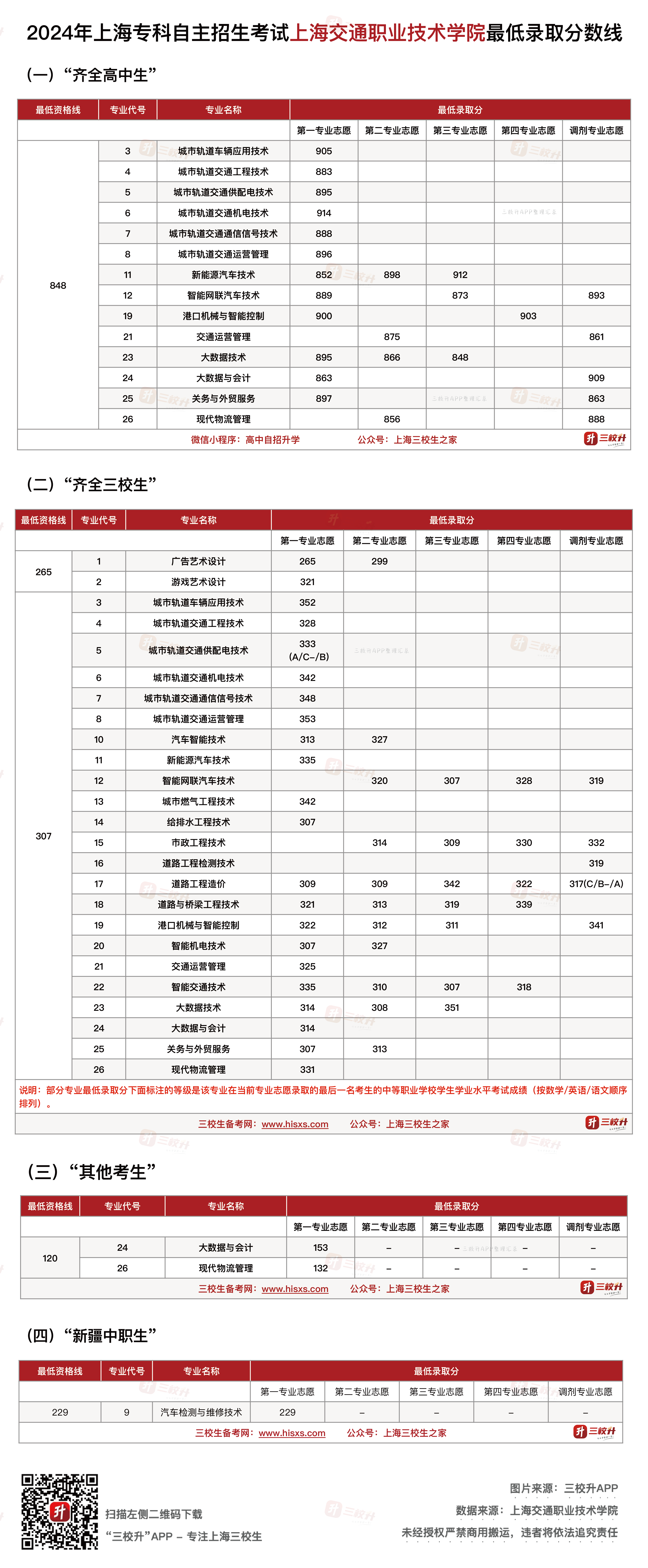 【三月分数线】上海交通职业技术学院专科层次自主招生考试历年分数线