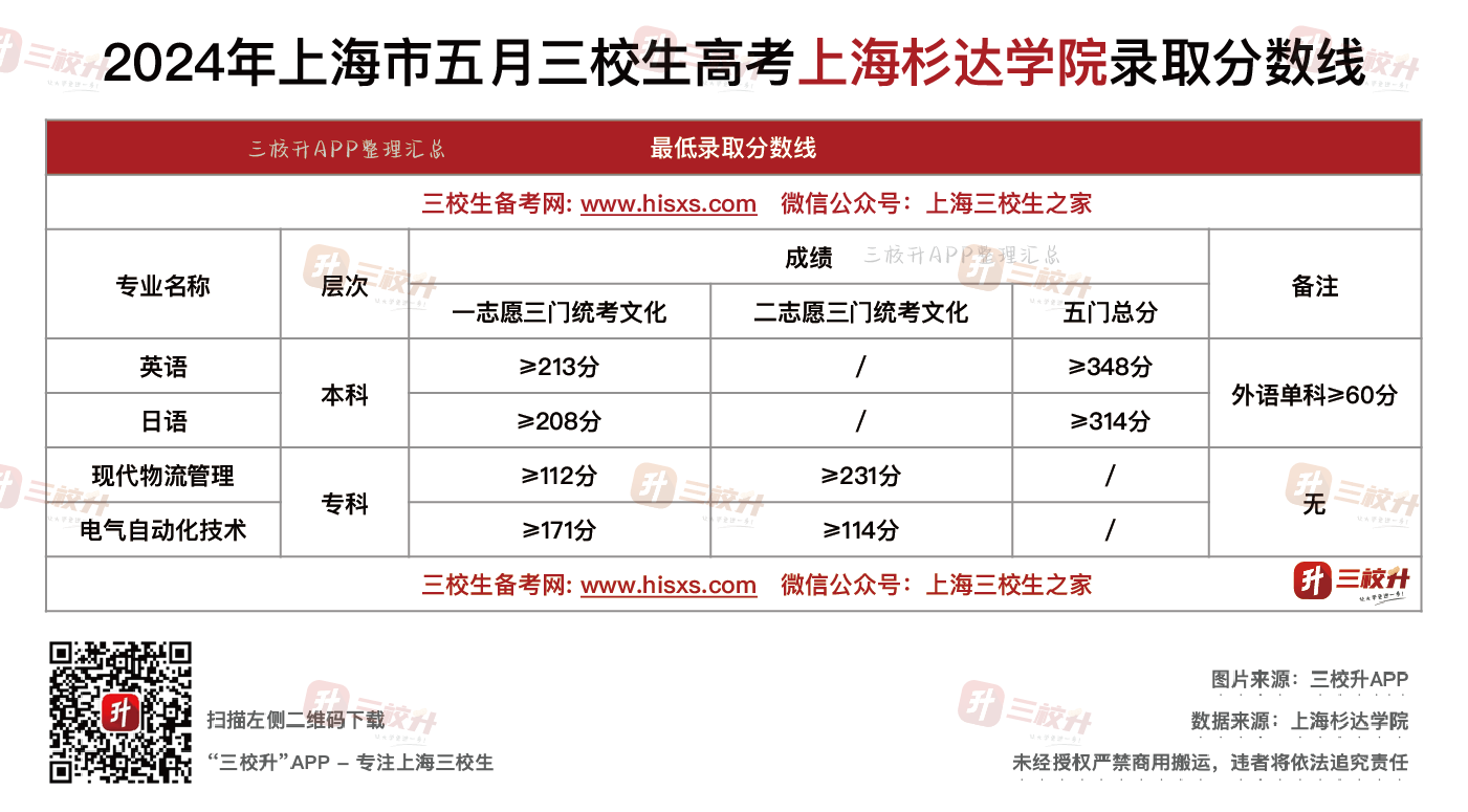 【五月分数线】上海杉达学院三校生高考历年分数线